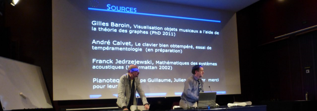 IRCAM. Séminaire Mamux. Salle Stravinsky. Conférence aux côtés de Gilles Baroin et Stéphane Marcand. Gilles Baroin - Essai de Visualisation de Tempéraments André Calvet - Du Non-Tempéré à l’Obtempéré _ Visions d’accordeur… Stéphane Marcand - Une approche graphique de la perception des hauteurs dans les intervalles musicaux